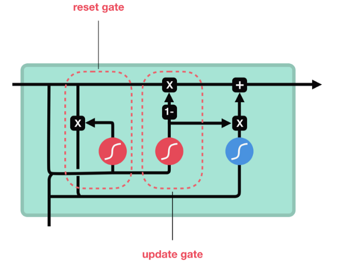 - GRU(Gated Recurrent Unit)也称门控循环单元结构, 它也是传统RNN的变体, 同LSTM一样能够有效捕捉长序列之间的语义关联, 缓解梯度消失或爆炸现象. 同时它的结构和计算要比LSTM更简单, 它的核心结构可以分为两个部分去解析: