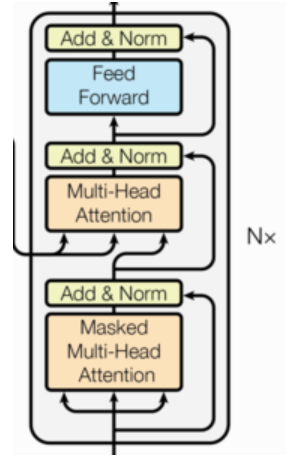 - 每个解码器层的输入是上一层的输出,或者对于第一层来说,是输出嵌入向量加上位置编码向量。