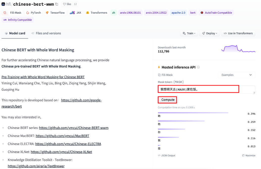 my_model = pipeline(task='fill-mask', model='model/chinese-bert-wwm')