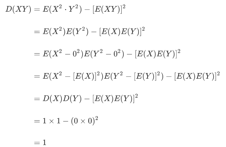 可以得到E(XY) = E(X)E(Y) = 0 * 0 = 0