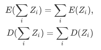 上述公式,简读为:和的期望,等于期望的和;和的方差等于方差的和