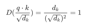 q*k = (q1k1+q2k2+......+q(d_k)k(d_k)), has mean 0 and variance d_k.